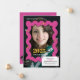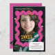 Faça ondas com seu anúncio de graduação! Este convite divertido e na moda apresenta um design cor-de-rosa giro que certamente vai pegar o olho. Mostre orgulhosamente a foto do seu formando enquadrada por um boné de formatura clássico, e personalize-a com seu nome e todas as informações interessantes da parte. É uma forma enérgica e única de convidar amigos e família para celebrar este grande marco!