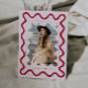 Cartão de anúncio de formatura simples e simples para enviar para a família e os amigos. Há uma mão desenhada à volta da sua foto com o nome do formando abaixo. Fundo vermelho.