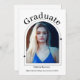 O convite para celebração de formando elegante apresenta uma foto do formando, Na frente, o nome do formando, a escola e o ano de aula estão inscritos no escrevendo preto casual e moderno.