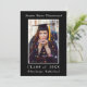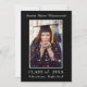 Um anúncio de graduação moderno e minimalista que apresenta um quadro branco sobre sua escolha de foto. O verso apresenta outra fotografia e mais detalhes sobre o seu formando.