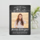 Compartilhe a alegria de um segundo grau ou formandos com estes anúncios personalizados de 2 fotos em preto, branco e prata. (DICA DE IMAGEM: Uma maneira fácil de centralizar uma imagem exatamente como você deseja é recortá-la antes de carregá-la no site do Zazzle.) Este modelo inclui o nome do formando, o ano de aula e a escola, e é simples de personalizar com qualquer texto de sua escolha, como detalhes do convite de festas, nomes de pais, honras especiais, título do grau, citação de inspiração favorita, informações de contato do formando, planos educacionais futuros ou nova posição de emprego. Se houver algum texto não desejado, simplesmente exclua-o. Design apresenta um fundo escovado preto, boné de conselho de morteiro de folha falsa, caligrafia de script manuscrita, tipografia moderna minimalista e duas fotos de sua escolha, como fotos de mais velho ou imagens da cerimônia de início. Note que o fundo é impresso a cores e não em folhas metálicas. Estes cartões de anúncio elegantes de formatura são uma forma na moda para compartilhar sua celebração especial com a família e os amigos. Parabéns ao formando!