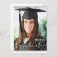 Um simples cartão moderno para anunciar uma formatura. A frente apresenta FORMANDO em tipografia de script branco. Personalize com uma foto do formando, o nome do formando, o ano de graduação e a escola. O inverso tem uma modelo de tipografia para personalizar com sua própria mensagem ou você pode excluir todo o texto para deixar o vazio.