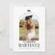 Este anúncio clássico de graduação de uma foto apresenta uma orientação vertical, uma foto moderna em forma de arco. Acima da foto há um boné de formatura simples e curvo. Abaixo, a foto é uma bela fonte de script para o primeiro nome e uma fonte serif em negrito para o sobrenome e o texto editável para o nome e o ano da escola. A parte de trás deste design deitou fora chapéus e muito espaço para personalizar e adicionar detalhes adicionais. Como mostrado, os modelos estão configurados para um convite para festas de formatura, mas podem fazer mudanças de acordo com as suas necessidades. Este anúncio de graduação está disponível como um cartão impresso simples ou um download digital. Por favor, verifique a loja de Designs Lisa McLean para obter opções adicionais e coordenar peças.
