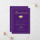 Envie a sua família e amigos um anúncio de formatura elegante e formal, com um fundo roxo com uma caligrafia falsa em dourado e um boné de formando com bordado por uma fina estrutura em ouro. Personalize com seus detalhes de graduação. Desenhada por Susan Coffey.