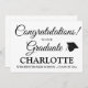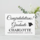 Parabéns do nosso formando personalizado script elegante cartão de nota de anúncio de graduação. Texto preto totalmente personalizável, fundo branco sólido e plano. Com um boné de formatura por cima. Sinal de tipografia moderna elegante, excelente para crianças e adultos. Esses cartões são excelente para o anúncio de graduação, convite para o dia de graduação, festa de formatura etc. Personalizáveis para o jardim de infância, o ensino básico, o ensino médio, o segundo grau e a faculdade. Você pode personalizá-lo e torná-lo único.