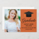 Esta placa de lançamento do formando de fotos laranja apresenta um roteiro preto elegante ao lado da fotografia do seu segundo grau ou formando para a classe do mais velho de 2025. Personalize com seu nome em escrita cursiva sob a adorável caligrafia e envie para amigos e familiares.