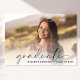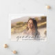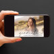 Cartão plano com anúncio de graduação elegante, com a foto do formando sobreposta a um "formando" em uma escritura moderna fina e seu nome e ano de aula em uma fotografia simples.