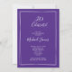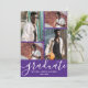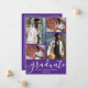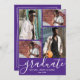 Adicione suas quatro fotos favoritas à frente desses convites de festa de formatura com formando e classe de caracteres em caracteres quicos em um fundo de cor roxo da escola. Clique no link Personalizar para mudar para qualquer cor usando nossas ferramentas de design. Mais designs e cores feitas em nossa loja, incluindo convites, cartões salve a data e postais.