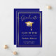 Anúncio de Graduação do Boné marinho Azul e Dourado Moderno. Para mais personalização, clique no botão "Personalizar" e use nossa ferramenta de design para modificar este modelo.