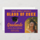 Este moderno cartão de anúncio de graduação de mais velho roxo e laranja contém tipografia branca clássica do seu segundo grau ou nome de faculdade para a classe de 2024. Personalize com seu ano de graduação com o script manuscrito chic e formando boné para anúncios de fotos do formando do excelente. Adicione os detalhes da sua festa no verso.
