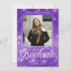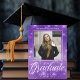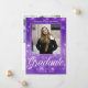 Anúncio de foto de formatura de brilho roxo com o seu nome de segundo grau personalizado e a sua classe sob a sua imagem de retrato do mais velho de tendência. Personalize essas cartas elegantes para uma mais velho formada na classe de 2025. Personalize com um segundo de uma bela fotografia de estudante no verso, juntamente com os seus detalhes de início.