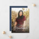 Este anúncio de graduação simples e clássico apresenta uma grande foto vertical e a palavra "formando" na escrita. O backer de coordenação do marinho possui faixas simples. Este anúncio de graduação é perfeito para a graduação de segundos graus ou formandos universitários e funciona bem para meninas ou caras.