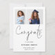 Parabéns Script 2 Graduação da Foto 2023. Estilo moderno e contemporâneo para que todos saibam a notícia do seu formando. Basta substituir as duas fotos de exemplo por suas próprias e personalizar com seu nome de formando, segundo grau, ano e mensagem no verso. Parabéns está em um roteiro elegante.