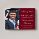 Elegante anúncio de formandos vermelho de burgundy com foto do formando, seu nome e ano de aula em um roteiro de ouro na moda e sua universidade, major e honra.