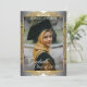 Parabéns únicos e modernos, formando de anúncio e cartão de convite de festas de celebração, com um clássico círculo de mandala dourado em uma cinza de prata falsa e um padrão de gradiente de ombre branco. Com espaço para personalizar ou personalizar com uma foto, o nome do formando, ano de graduação, segundo grau e futuro nome da faculdade ou universidade. Deixe a família, amigos e vizinhos saberem que há um formando feliz pronto para conquistar o mundo, e convide todos a virem celebrar o feliz evento com vocês!