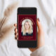 Anúncio de graduação vermelho de burgundy elegante com a foto do formando em um quadro de arco, "Formando" e seu ano de aula em tipografia de serifa de ouro, e seu nome e escola em uma simples tipografia de ouro.