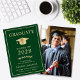 Anúncio do formandos verde elegante com boné de formando de ouro e tipografia moderna de ouro simples e leve para o nome do formando, ano de aula, universidade ou universidade, grau e grande ou honras. A foto do formando preenche a parte traseira da placa.