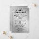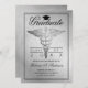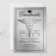 Mande a sua família e amigos um anúncio elegante de formatura para médicos. Este design apresenta um fundo falso prateado para um caduceus acentuado pela palavra "Formando" com boné de formando preto e seus detalhes de graduação para você personalizar. Elaborado por ©Tim Coffey.