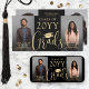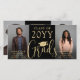 É uma formatura dupla! Anuncie a conquista de dois formando com anúncios de fotos personalizadas de graduação em conjunto com na moda. Todas as imagens e textos são simples de personalizar para cartões de anúncio ou convites de festas de formando. Além disso, as cores podem ser personalizadas com a ferramenta design Zazzle. O design moderno preto e dourado apresenta uma caligrafia manuscrita com um boné de conselho de argamassa, uma elegante tipografia clássica e quatro fotos de sua escolha, como fotos de mais velho ou imagens da cerimônia de início. Observe que o ouro é impresso a cor, não a folha metálica. Este convite de formatura é uma forma na moda para anunciar uma celebração especial para dois formandos, como irmãos, melhores amigos, primos, gêmeos, irmão e irmã, etc. Parabéns para ambos os formandos!