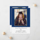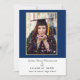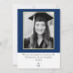 Um moderno com marinho azul stripes graduation Anúncio com um quadro sobre sua escolha de foto. A parte traseira apresenta outra foto e mais detalhes sobre seu formando.