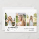 Este Mínimo Anúncio de Graduação de Colagem de Fotos em Preto e Branco é perfeito para anunciar sua graduação do segundo grau ou da faculdade para seus amigos e família. Personalize com 4 fotos, três na frente e uma atrás. O lado frontal apresenta a palavra "formando" em uma fonte de script de pincel de tendência. O anúncio é feito em branco, com letras negras.