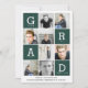 Cartão de graduação de colagem gráfica moderna verde-escuro. Um Cartão De Graduação Multifotográfica Moderno E Gráfico. Basta Alterar A Cor De Fundo Para Personalizar A Placa. Perfeito Para Mostrar Uma Seleção De Fotografias Ou Idade Do Seu Formando. Parte De Uma Coleção Coordenadora.