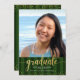 Tenha orgulho, alegria e anuncie ao mundo que seu formando favorito alcançou o seu marco com este convite de anúncio personalizado, simples, moderno e impressionante. Espetacular, elegante, esplêndida escrita à mão com brilho dourado, tipografia branca sans serif e uma foto da sua escolha sobrepõem um fundo verde-listrado de caçador. Personalize o texto personalizado com o nome do seu formando, o nome da escola, o ano de aula e a data de graduação. Na parte de trás, adicione seu bilhete pessoal, na próxima escola que frequentam, informações sobre festas, etc. Correspondendo e coordenando cartas de agradecimento, bonés, ventiladores, guardanapos, placas, banners e outros arranjos de graduação também estão disponíveis nesta coleção de tendências e na moda. Garantido para adicionar diversão na moda à sua ocasião especial! Basta substituir a foto de amostra por uma de suas, digitar as informações de seu formando, personalizar a mensagem no verso e você pode personalizar facilmente este verdadeiro convite para o anúncio de formatura da folha de ouro. Por favor, me mande mensagens com quaisquer perguntas ou solicitações.