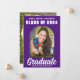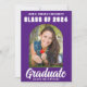 Este anúncio do formando de fotos de mais velho roxo e branco moderno apresenta o seu nome de segundo grau ou de faculdade para a classe de 2024. Personalize com seu nome sob o chic, o script manuscrito em negrito para um cartão de graduação personalizado do excelente. Adicione uma fotografia de cheio de segundo na parte traseira.