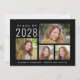 Simples anúncio de graduação em preto para ele ou para ela com uma colagem de fotos de 4 fotos na frente e uma foto de cheio no verso. Acrescentar o ano de aula, o nome do formando e a escola ou universidade em uma tipografia branca moderna e mínima.