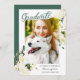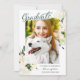 Anuncie sua formatura com este lindo Cartão de Graduação Floral de Rosa Verde Branco. A elegante rosa branca e design verde impressionará seus entes queridos e mostrará seu sucesso de na moda. Você pode personalizar facilmente este cartão com sua própria foto e mensagem para torná-lo uma maneira verdadeiramente única de compartilhar seu sucesso com sua família e amigos. Além disso, a opção de download digital facilita o compartilhamento do seu anúncio em mídias sociais ou impressão em casa.