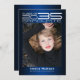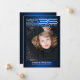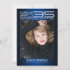 Estilo de ficção científica de alta tecnologia moderno, cartões de lançamento de fotos de graduação, apresentando elementos design de tipografia futurista sofisticada, lendo "Classe de Formando 2023" seu nome e nome da escola. O verso do cartão oferece espaços de texto personalizados para informações sobre sua graduação e futura jornada. As cores são o texto branco e cinza prateado colorido em tons de azul gradientes ou muda facilmente a cor de fundo como quiser. Perfeito para todos os mais velho de segundos graus, universidades, universidades e escolas de tecnologia.