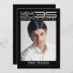Estilo de ficção científica de alta tecnologia moderno, cartões de lançamento de fotos de graduação, apresentando elementos design de tipografia futurista sofisticada, lendo "Classe de Formando 2023" seu nome e nome da escola. O verso do cartão oferece espaços de texto personalizados para informações sobre sua graduação e futura jornada. As cores são o texto branco e cinza prateado colorido em preto real ou muda facilmente a cor de fundo como quiser. Perfeito para todos os mais velho de segundos graus, universidades, universidades e escolas de tecnologia.