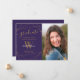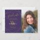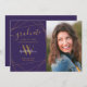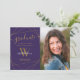 Este elegante cartão de anúncio de graduação com um nome de letra inicial de fotografia e monograma e padrão geométrico em ouro sobre fundo roxo parece muito bom dar à família e amigos anunciando um dia elegante de formatura. A coisa excelente aqui é que você pode personalizá-lo adicionando o nome, inicial e texto. Fotografia © Storytree Studios, Stanford, CA