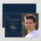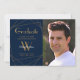 Anúncio Graduação Geométrica do Monograma de Foto Azul Mod