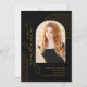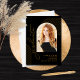 Anúncio de fotografia geométrica em preto e ouro. TODAS AS CORES SÃO EDITÁVEIS usando a Ferramenta Editar. Personalize com sua foto, nome, ano de formando e escola. A parte de trás apresenta uma colagem de fotos, bem como uma "assinatura" do nome delas - cuja cor e posição podem ser editadas para se adequarem ao seu fundo fotográfico. Use o texto no verso para incluir detalhes da cerimônia de graduação, informações sobre a festa de formando ou um breve resumo sobre os planos futuros do aluno. Crédito da fotografia: Kseniia Perminov. © Kimbellish, LLC