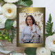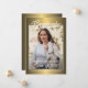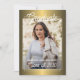 Cartão de convite de festas de formando e celebração de parabéns exclusivos e tradicionais, com um fundo clássico de cor dourada brilhante. Com espaço para personalizar ou personalizar com uma foto, o nome do formando, o ano de graduação, o segundo grau, o nome da futura faculdade ou universidade e as informações sobre eventos de festas de celebração. Deixe a família, amigos e vizinhos saberem que há um formando feliz pronto para conquistar o mundo, e convide todos a virem celebrar o feliz evento com vocês!