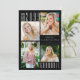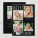 Convite de formatura moderno e minimalista em preto e branco com 5 fotos (uma colagem de 4 imagens do formando do ensino médio ou universitário na frente e 1 no verso. O verso oferece um campo de texto opcional para incluir informações sobre o formando (exclua se não desejar). ALTERAÇÃO DE COR: A cor do fundo e/ou a cor do texto podem ser alteradas para a cor da escola ou uma cor que complemente suas fotos. ASSISTÊNCIA: Para obter ajuda com a modificação ou personalização do design, alteração de cor, transferência do design para outro produto ou se você gostaria de itens coordenados, entre em contato com o designer ANTES DE COMPRAR pelo Zazzle Chat ou e-mail para makeitaboutyoustore@gmail.com.