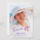 Expresse sua gratidão com a graduação legal, moderna e personalizável, obrigado cartas. Substitua a foto e o texto do exemplo de formando por você para torná-lo exclusivo. A placa plana apresenta as palavras "Obrigado" em uma fonte violeta de script de aquarela que sobrepõe a foto. Personalize o nome do formando, segundo grau ou faculdade e o ano de classe abaixo dele. No verso, um padrão pintado decorativo de curvas brancas rolantes se encontram e divergem sobre um fundo roxo. Se tiver problemas com o posicionamento ou o dimensionamento da foto, clique no botão "Personalizar" e use a ferramenta design para ampliá-la/diminuir ou movê-la. Se precisar de ajuda, por favor, entre em contato comigo. Curvas brancas de rolagem em padrão violeta, Copyright ©Claire E. Skinner. Todos os direitos reservados.