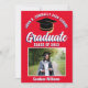 Este moderno anúncio de graduação de fotografias a mais velho vermelho, branco e azul personalizado apresenta a tipografia típica do seu segundo grau ou nome da faculdade para a classe de 2023. Personalize com seu ano de graduação com o script de chic manuscrito e o boné de formando preto para decor personalizado de fotos do formando do excelente. Adicione uma fotografia de segundo no verso com seus detalhes.