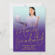 Anúncio de Formatação Praticamente Graduada em Foto 2022 Púrpura e Amarela. Tire uma foto divertida de seu formando e simplesmente substitua-o pela amostra no modelo que tem uma camada de cor sobreposta para desaparecer da borda inferior para roxo.Praticamente Graduado está em um estilo de escrita manual definido. O nome do formando, o nome do Segundo grau e a mensagem no verso podem ser facilmente personalizados.