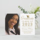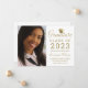 Anuncie seu Formandos à sua família e amigos com este cartão chic de anúncio. O elegante modelo de design apresenta a sua fotografia à esquerda 3,5x5 e à direita sobre um fundo branco, onde se lê "CLASSE DE Formando DE 20XX" com o seu nome, grau, escola e data abaixo, numa tipografia moderna e falsa dourada, acentuada por um boné de formatura de ouro. Desenhado pela artista ©Susan Coffey.