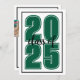 Um eterno e versátil anúncio de graduação vertical que apresenta o ano "2025" em negrito verde, com a "classe de" elegantemente escrita em preto no meio. O design inclui quadros de linhas pretas elegantes na frente e na parte traseira, adicionando um toque polido. Totalmente personalizável, você pode ajustar as cores do ano, texto e fundo para corresponder às cores da escola ou ao seu tema. A parte de trás espelha a frente com uma estrutura de linha preta limpa, oferecendo espaço para fotos e uma mensagem sincera dos pais. Esse design sofisticado e clássico é perfeito para celebrar essa grande conquista.