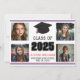 Celebre seu novo formando! Este cartão de anúncio em negrito tem um boné de formatura com uma fita vermelha, branca e azul. Personalize com as fotos do seu formando.