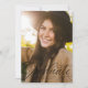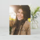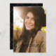Um formando clássico e elegante em preto fica no fundo de uma foto vertical. O texto personalizado inclui espaço para o nome do formando e também detalhes escolares e do ano. O backer preto correspondente tem um padrão de grade simples, e a cor pode ser alterada clicando em "personalizar mais". Anuncie a realização do seu formando aos amigos e à família com este design!