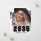 Classic Modern Graduation Announcement. The front features a full-page photo with a white gradient at the bottom that fades seamlessly into the image. Over the gradient, "2026" appears in bold black classic school-style font. Just above it, "Class of" is written in elegant gray script. To the left of the year is a small, customizable graduation cap icon in black. Below the year, the graduate's name and school name are prominently displayed in black. All colors can be customized to match school colors or personal preferences.