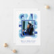 Retro-style, yet modern, graduation announcement and party celebration photo card that features the word "GRAD" designed with geometric shapes in various colors that form a border around the photo of the graduate. Retro colors—blue, teal, white—add to the card's retro style.