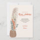 Cartão de lançamento moderno, fácil de personalizar com seu novo endereço. Design de estilo de vida boho com cesto de rastão de erva-pampas, folhas de eucalipto e flores tropicais. "novo endereço" é escrito à mão em caligrafia suave e o restante texto é totalmente editável. Paleta de natas, laranja queimada e verde-oliva.
