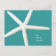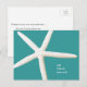 Simples estrela-do-mar grande em cartão postal azul-esverdeado com texto personalizado. Para uma única pessoa ou família enviar como um aviso acessível de que se mudou para a costa, praia, trópicos.