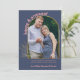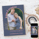 Anúncio personalizado de fotogravidez na paleta colorida neutra de gênero de azul marinho e coral rosa. O modelo de foto está configurado para você adicionar sua própria foto, que é emoldurada em um arco dourado com folhagem fina. "feliz e grávida" é escrito em tipografia ousada e arcaica. O restante do texto é totalmente editável para você personalizar com sua mensagem personalizada, data de vencimento do bebê e seu próprio nome. Uma design moderna e chique para compartilhar uma foto de sua gravidez.