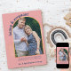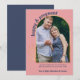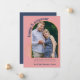 Anúncio personalizado de fotogravidez na paleta colorida de cor verde e azul-marinho. O modelo de foto está configurado para você adicionar sua própria foto, que é emoldurada em um arco dourado com folhagem fina. "feliz e grávida" é escrito em tipografia ousada e arcaica. O restante do texto é totalmente editável para você personalizar com sua mensagem personalizada, data de vencimento do bebê e seu próprio nome. Uma design moderna e chique para compartilhar uma foto de sua gravidez.
